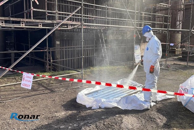 Demontáž takto vstavaných azbestových dosiek v betónových nosníkoch vo výškach má niekoľko vlastných špecifík. Ronar s.r.o. je špecialista nielen na likvidáciu azbestových materiálov, ale zároveň disponuje certifikovanými odborníkmi na výškové práce s horolezeckou technikou.
